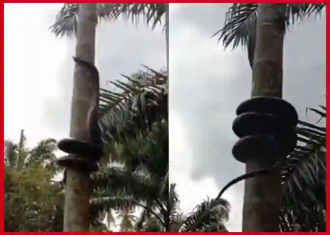 ताड़ के पेड़ पर चढ़ता नजर आया विशालकाय सांप, वीडियो देखकर बोले लोग- क्यों चढ़ रहा है?...